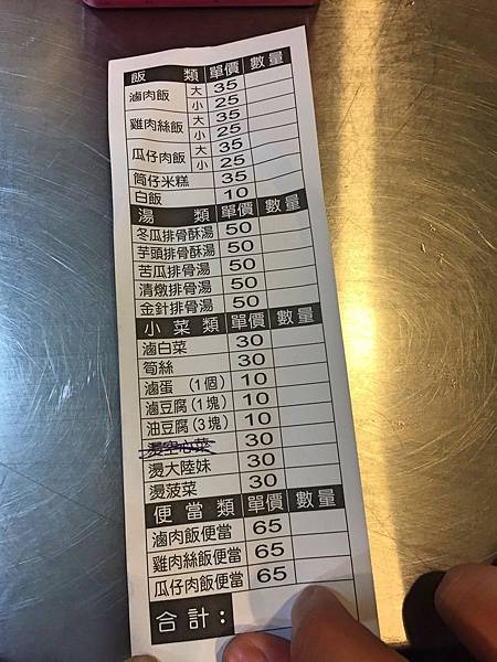 坐定位後店員會隨之送上菜單,品項沒有很多,米糕和排骨酥湯是店家招牌,其他就看個人喜好去點選吧。